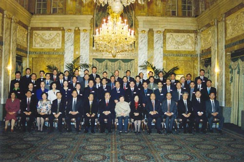 1998年3月28日中国国家主席江泽民和夫人率领的中国政府代表团访问奥地利,在其下榻宾馆和旅奥侨界代表合影留念。(第三排左五为倪铁平先生)