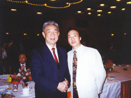 1997年10月倪铁平先生在北京人民大会堂和中共中央政治局委员、国务院副总理邹家华合影留念。