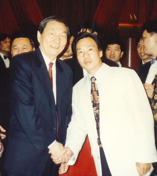1997年10月在北京人民大会堂,中共中央政治局常委、国务院总理朱镕基亲切接见倪铁平先生。