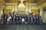 中共中央政治局常委、国务院总理李鹏,中共中央政治局常委、国务院副总理李岚清率领政府代表团访问奥地利和旅奥侨界合影留念。(第三排左六为倪铁平先生)