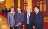 2004年9月28日奥中经贸会倪铁平先生、蒋正波先生、裘小荣先生与全国政协副主席李贵鲜先生在北京人民大会堂合影留念。