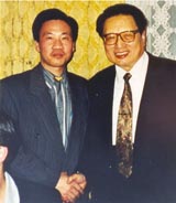 1997年10月倪铁平先生在北京人民大会堂和中共中央政治局委员、国务院副总理邹家华合影留念。