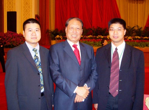 2005年9月30日在北京人民大会堂国庆56周年国宴上,奥中经贸会朱肖峰、陈贤厚和全国人大副委员长成思危先生合影。