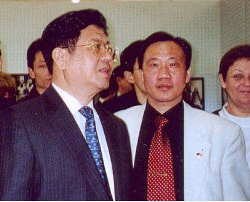 2003年4月11日倪铁平先生和中共中央政治局委员、全国人大副委员长王兆国在中国革命历史博物馆合影留念。