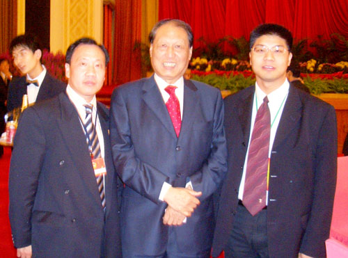 2005年9月30日在北京人民大会堂国庆56周年国宴上,奥中经贸会倪铁平、朱肖峰和全国人大副委员长成思危先生合影。