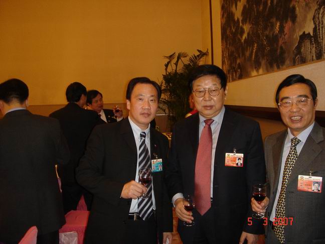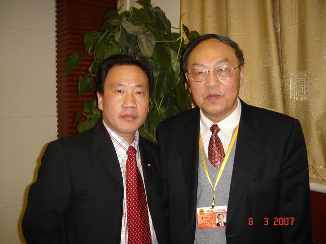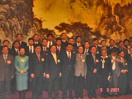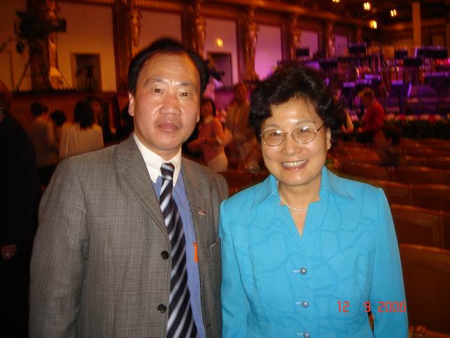 2005年9月30日在北京人民大会堂国庆56周年国宴上,奥中经贸会副会长朱肖峰和全国政协副主席周铁农先生在一起。