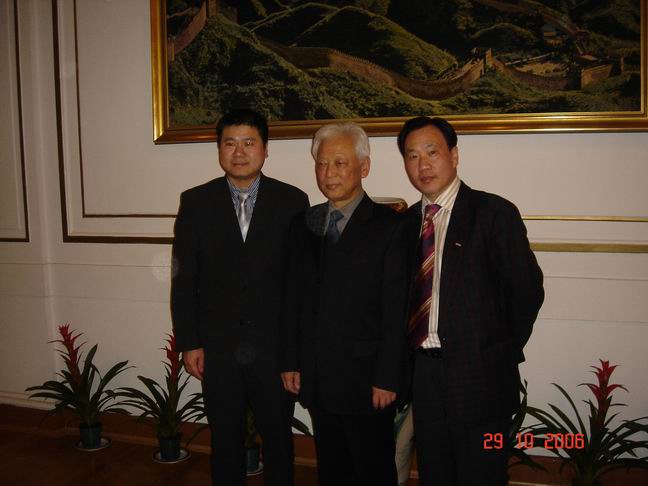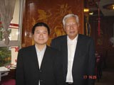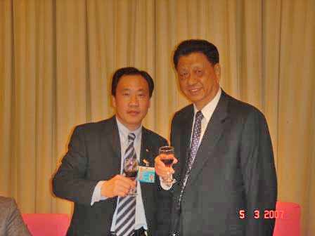 2005年9月27日倪铁平先生在北京中国大饭店和全国政协副主席周铁农举杯互祝。