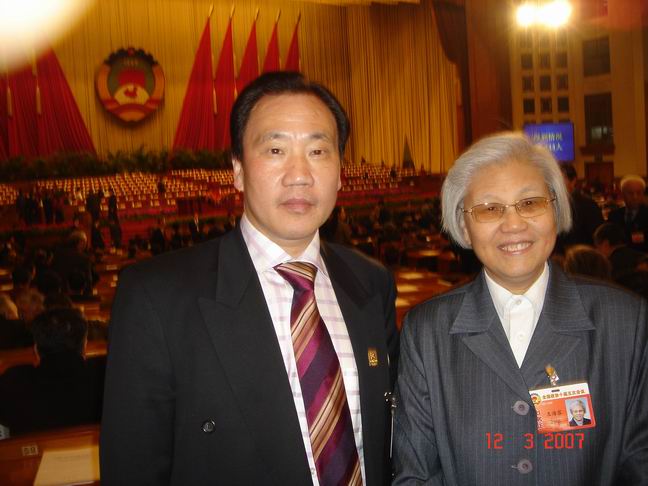 全国政协副主席廖辉和倪铁平先生在人民大会堂合影。