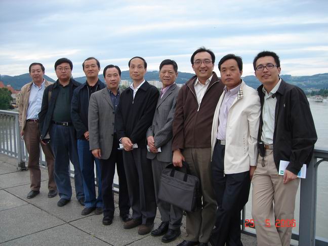 2005年8月18日在奥地利萨尔斯堡全国政协副主席罗豪才先生一行和奥中经贸会倪铁平、蒋正波、赵国荣合影留念。