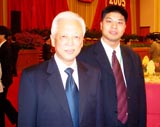 2005年9月30日在北京人民大会堂国庆56周年国宴上,奥中经贸会副会长陈贤厚和全国政协副主席周铁农先生在一起。