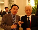 2005年国庆56周年国宴上,奥中经贸会副会长朱肖峰和全国政协副主席罗豪才先生合影留念。