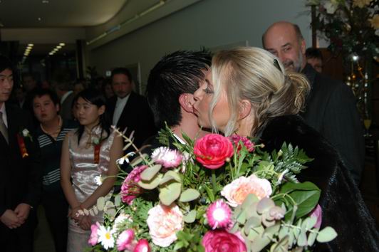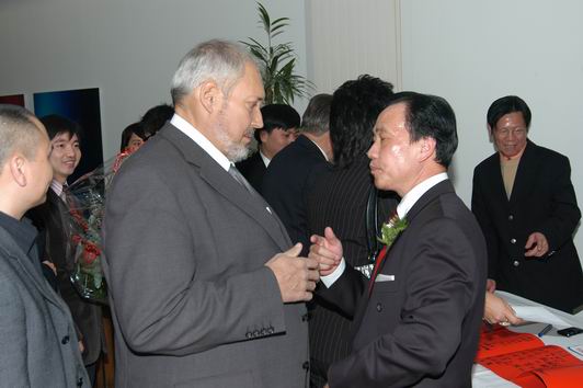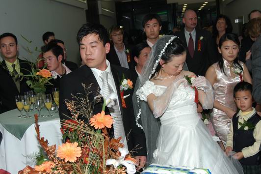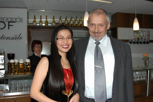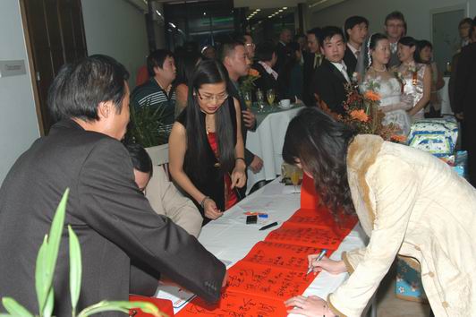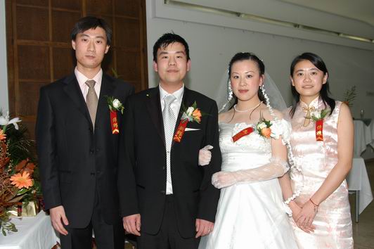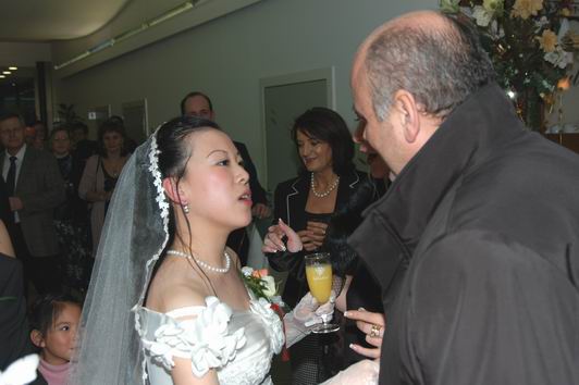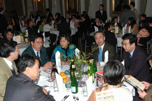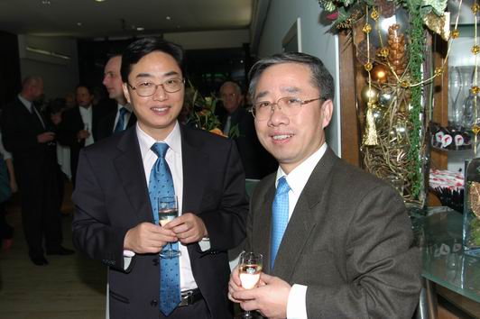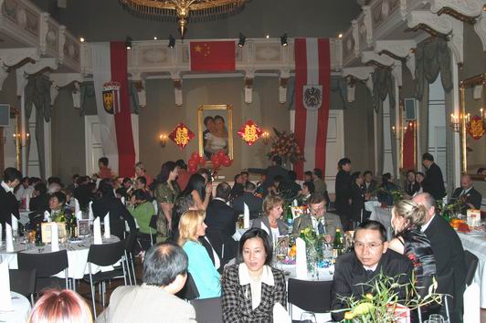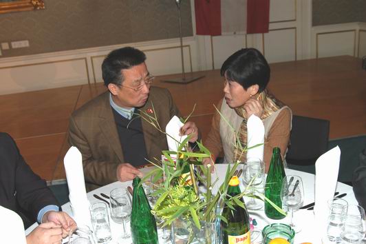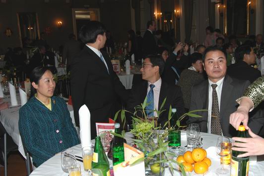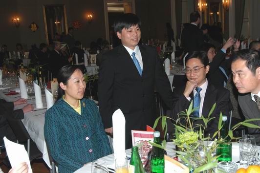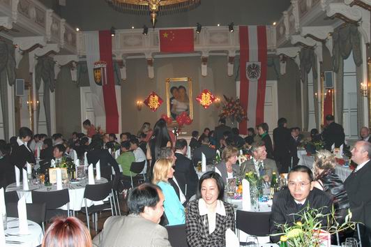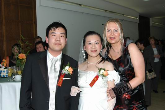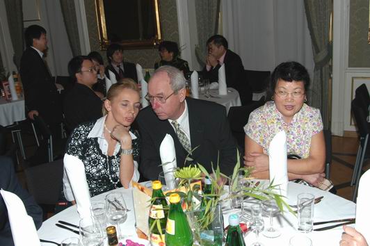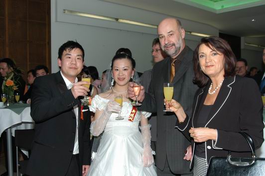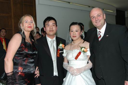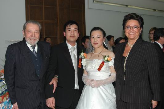中国驻奥地利大使馆政务参赞梁建全和中国常驻维也纳联合国政务参赞史忠俊在婚礼上
