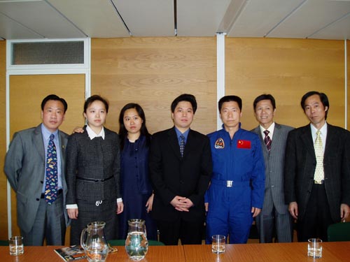 2004年5月28日奥中经贸会成员与航天英雄杨立伟合影留念。