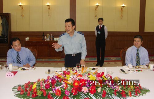 2005年9月26日在中国军事科学院郑申侠上将欢迎奥中经贸会,图中为郑申侠上将,图左为奥中经贸会倪铁平会长,图右为奥中经贸会陈贤厚副会长。