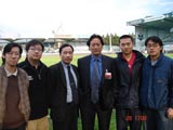 奥中经贸会足球俱乐部成员与中国足协主席谢亚龙在一起。