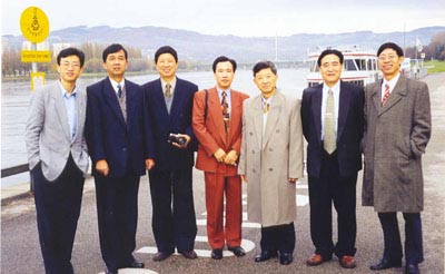 1997年3月倪铁平先生和浙江省人大副主任杨冰先生率领的人大代表团一行在多瑙河畔合影留念。