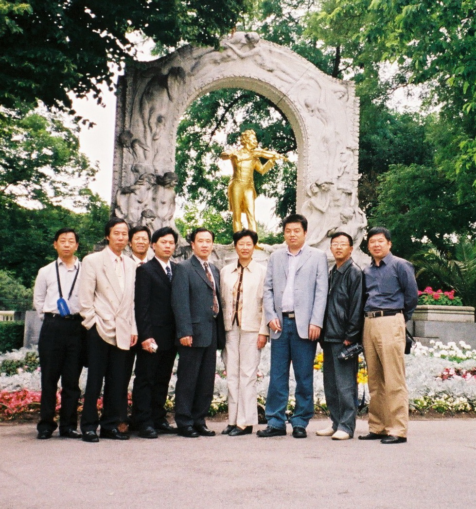 倪铁平先生、蒋政波先生与浙江省丽水市城建局局长陶国忠先生,青田县副县长郭尧忠先生在维也纳合影留念。