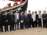 奥中经贸会副会长蒋政波先生和原解放军军事科学院政委张序三中将、温州市副市长钱成良先生、驻温海军部队领导在“绿眉毛”号前合影留念。
