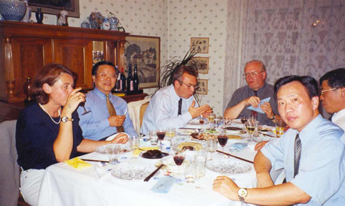 2002年7月11日在维也纳第八区卡明斯基教授家,倪铁平先生和中国国务院新闻办公室主任蔡武,奥地利社会党主席古森-鲍威尔合影留念。