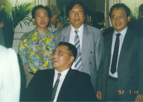 1992年7月14日倪铁平先生、鲁家贤教授在维也纳使馆和邓朴方合影留念。