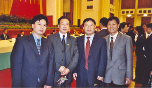 2004年9月28日在国庆55周年国宴上,奥中经贸会倪铁平、蒋政波、裘小荣和全国政协副秘书长孙怀山合影留念。