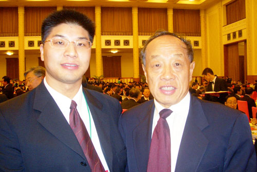 2005年9月30日在北京人民大会堂庆祝中华人民共和国成立56周年国宴上,奥中经贸会副会长朱肖峰和中国外交部长李肇星合影留念。