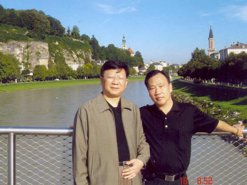 2005年8月18日倪铁平先生和中国和平统一促进会副秘书长王长鱼在萨尔斯堡合影留念。