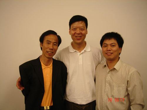2005年8月18日奥中经贸会蒋政波、赵国荣和中国和平统一促进会海外联络部办公室主任张学诚合影留念。