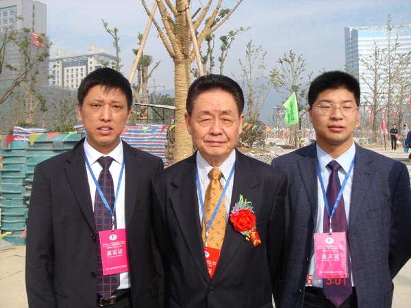 2005年在丽水世界华人大会上奥中经贸会副会长朱肖峰,奥德丽华水电站副董事长林克文和全国政协港澳台侨委主任郭东波在一起。
